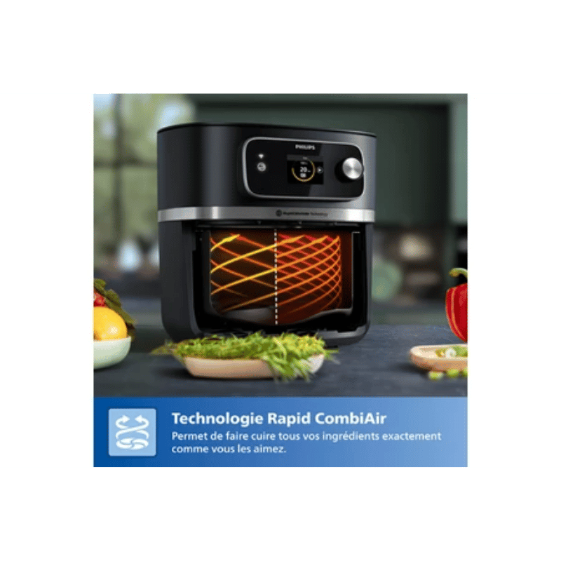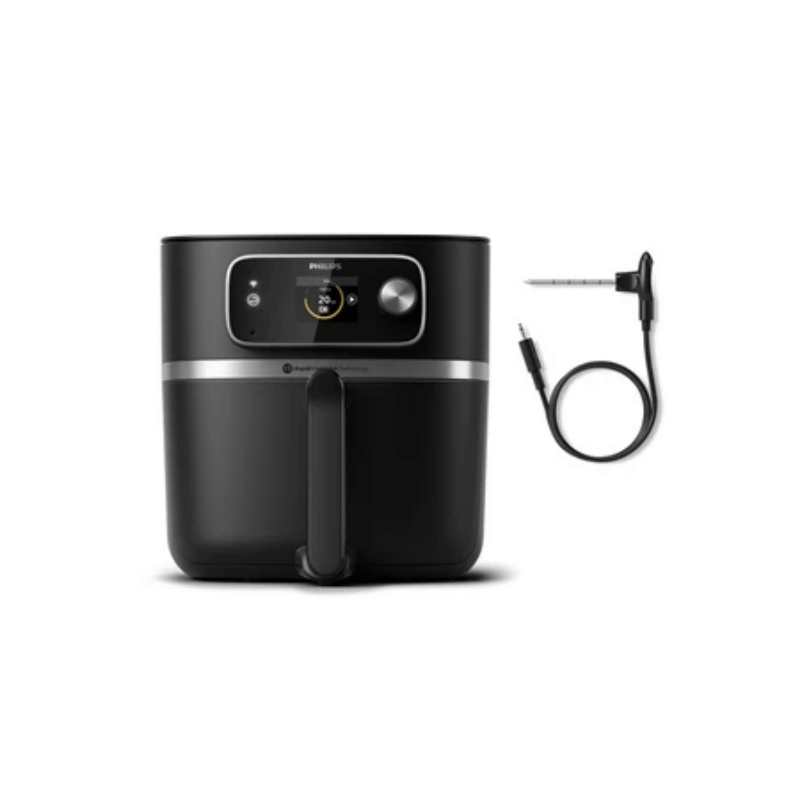 Friteuse sans huile connectée Philips HD9880/90 Airfryer XXL Série 7000 – Capacité XXL de 8,3 L pour 7 personnes, cuisson saine avec 99 % de matières grasses en moins, 100 préréglages intelligents, programmes automatiques, maintien au chaud, rail télescopique pratique, thermomètre intégré, technologie Rapid CombiAir™, application HomeID intuitive, accessoires inclus, compatible lave-vaisselle – 199 € au lieu de 349,99 €
